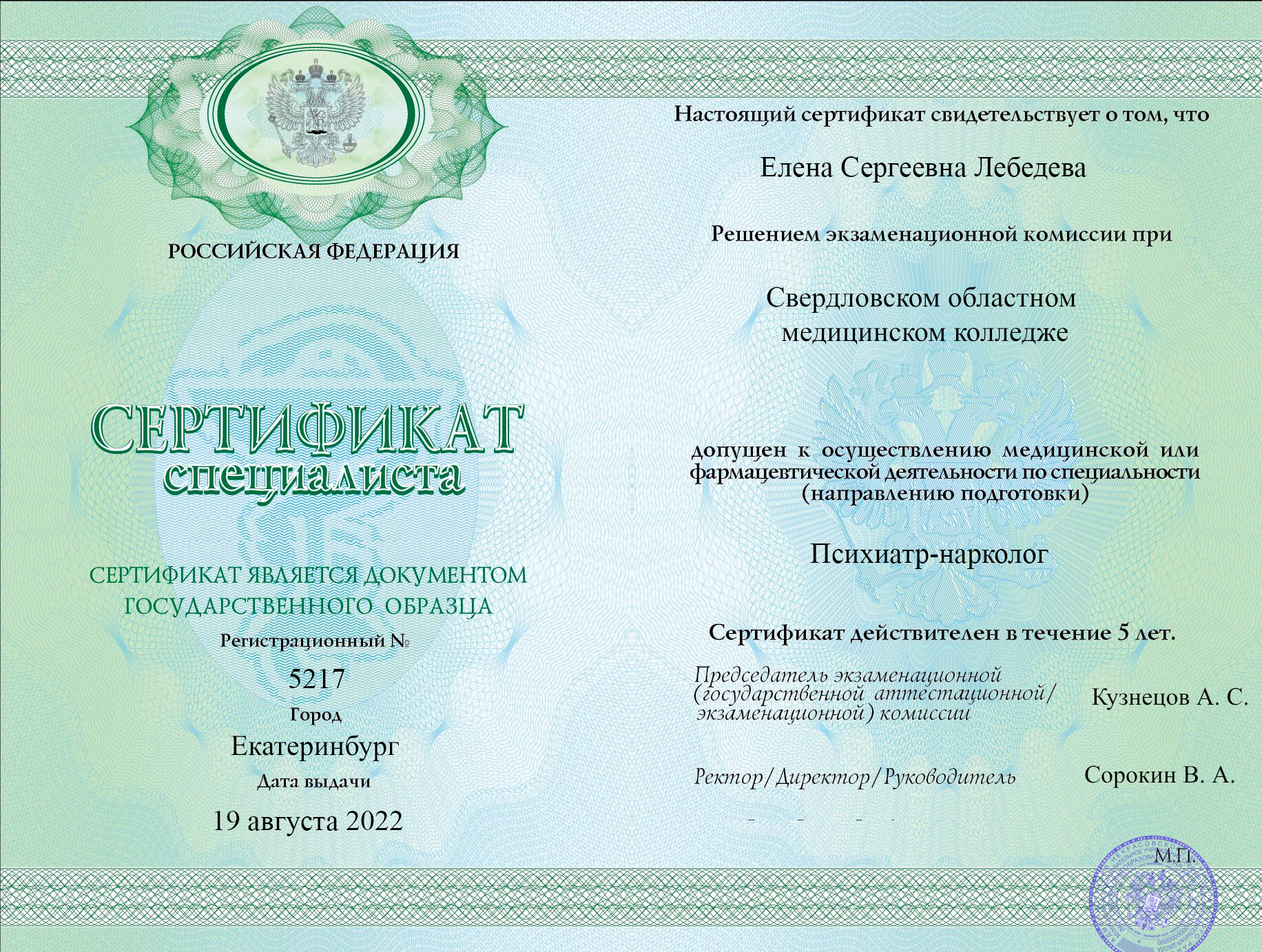 Елена Сергеевна Лебедева врач нарколог клиники доктора Стукаловой в Янауле